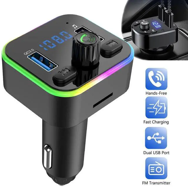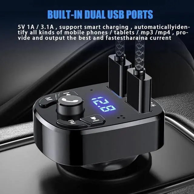 Wireless Vehicle Bluetooth FM Transmitter Car Charger 100% Brand new and high quality Multifunctional: Wireless connection(Bluetooth), Build in microphone, FM transmitter+USB Charger+MP3 Player Supports Bluetooth hand-free phone call , build-in microphone. With FM transmitter function, supports adjustment. Full-frequency covered 87.5-108.0MHz. Allowed to accept MicroSD card up to 64G and play playing music on MP3/WMA form. Come with 2 USB charging ports (5V/3.1A and 1.0A) for charging your smart phone or tablet. The main button on the middle supports to change music or swap call, the near rotary knob is designed to adjust the volume.