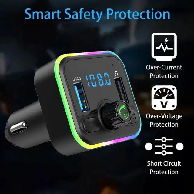 Bluetooth version: V5.0 Bluetooth protocol: A2DP, AVRCP, HFP Bluetooth band: 2.4 GHz-2.48 GHz Bluetooth Transmission distance: 5m FM frequency: 87.5-108 mhz FM transfer distance: 2meters Input voltage: 12-24V Output: 5V/1.0A 5V/3.1A Music format: mp3, wma