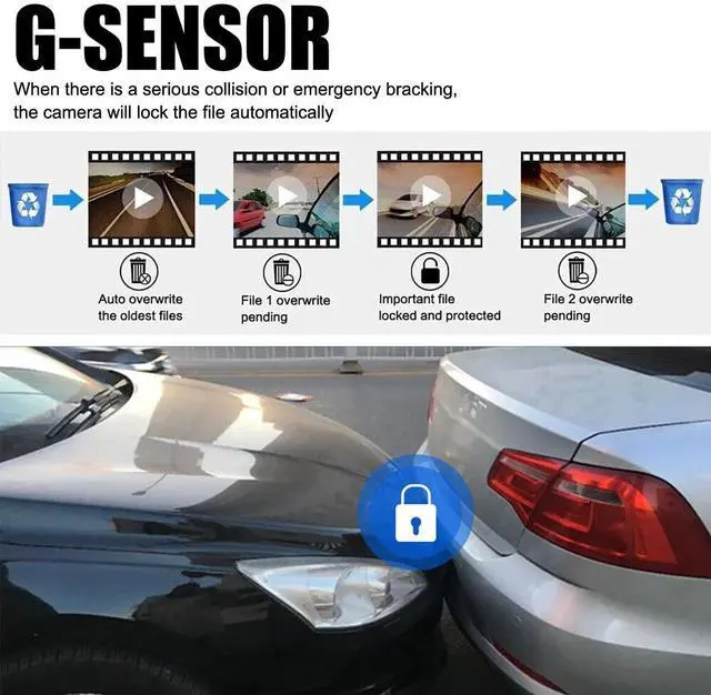 1.Loop Recording & Auto Emergency Recording: Seamless loop recording overwrites the old footage with new content when the card is full. When G-Sensor detects sudden collisions, the car dash will immediately start recording and lock the related footage, protecting your video evidence from being overwritten. Help you avoid endless quarrels. This dashboard camera supports up to 32GB of micro SD card .