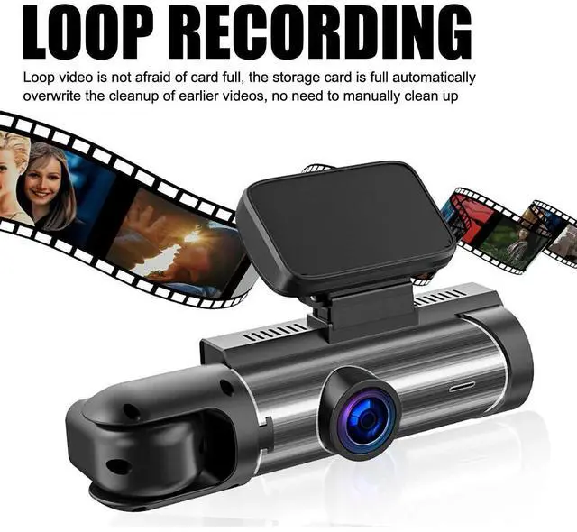 2.Dual Lens Shooting: This dash cam is equipped with dual camera. One records the front of your car, and the other records the interior of your car.