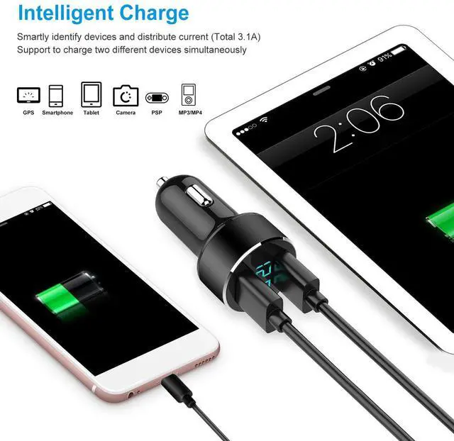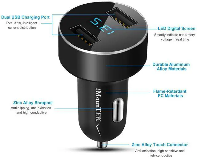 Convenient Dual USB Charging Port:Coming with two USB charging interfaces supporting total 3.1A output(single USB max. output is up to 3.1A),our USB car charger can charge two electronic devices simultaneously to ease your time.