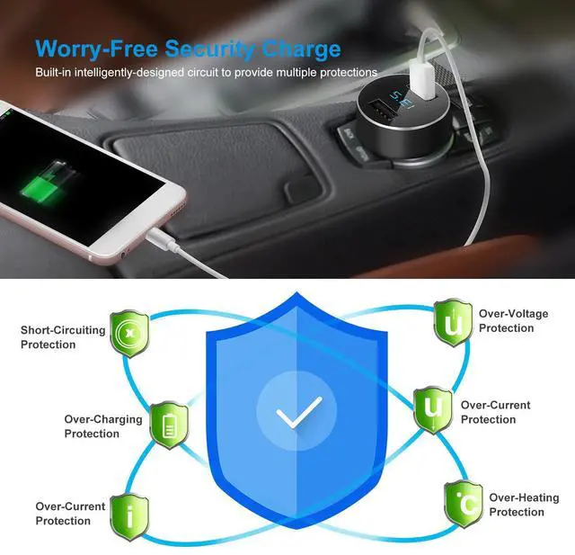Worry-Free Security Charge:Built-in intelligently-designed circuit,our USB car charger can provide short circuiting,over-heating,over-currents,over-charging and other advanced protections to ensure the safety of your devices.