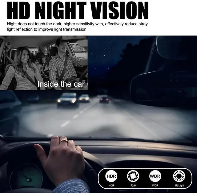 2.Dual Lens Shooting: This dash cam is equipped with dual camera. One records the front of your car, and the other records the interior of your car.