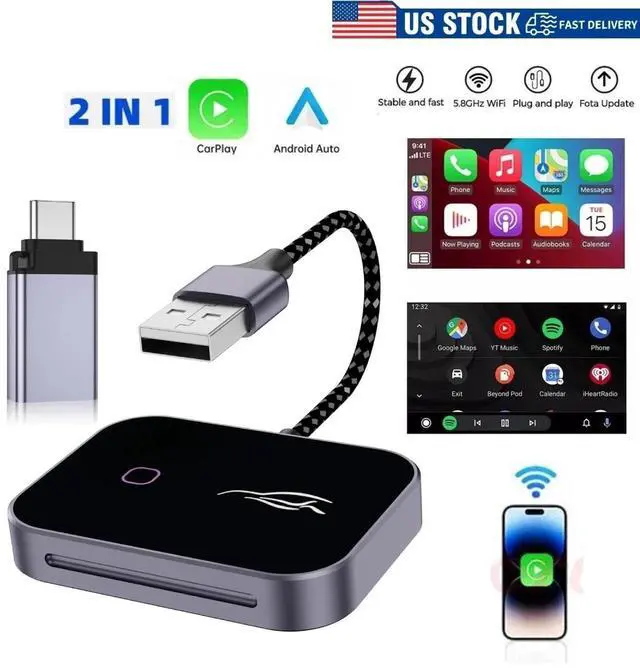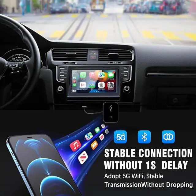 Compatible with CarPlay & Android AutoThis dual-purpose wireless adapter is compatible with wireless CarPlay/wireless Android Auto. It is very easy to convert your car's original wired CarPlay or Android Auto to wireless without any hassle. You can continue using the CarPlay or Android Auto function and keep the original car operation, such as navigation, playing music, voice assistant, phone calls, etc