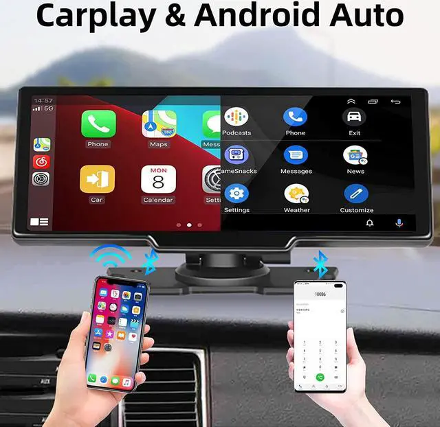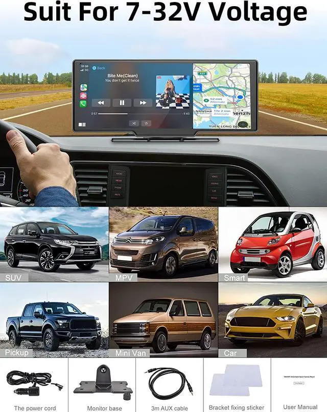 - Wireless carplay: You don't need to use a data cable. You just need to turn on Bluetooth and WiFi to connect, and Carplay will automatically connect next time. You can use voice control Carplay to play music, navigate, view text messages, etc. (iPhone only).