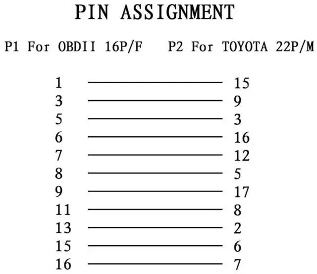 The cable can be used for converting connection for Toyota from 22 Pin to OBD2 OBD 16 Pin interface, allows you use OBD OBD2 diagnostic tools working with your vehicles with 22 Pin interface.