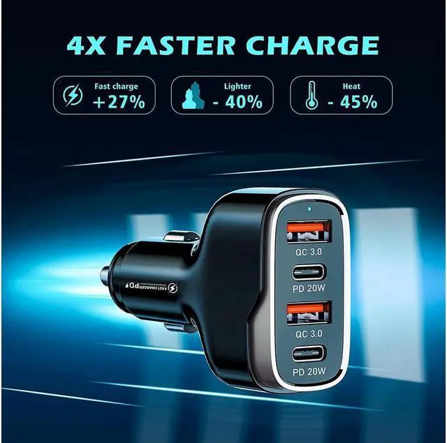 [2A2C 4-Ports Car Charge] A 4-Ports Car Charger Adapter with two usb-C to usb-C, and two usb-A to usb-A. If you travel with your friend, you use the USB-A port, and your friend needs the Type C port. In this way, our car charger can perfectly solve this problem. You can charge up to 4 devices together.