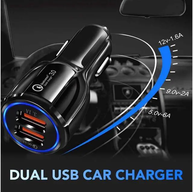 Car Charger With 5A 30W Dual USB Charging Ports.