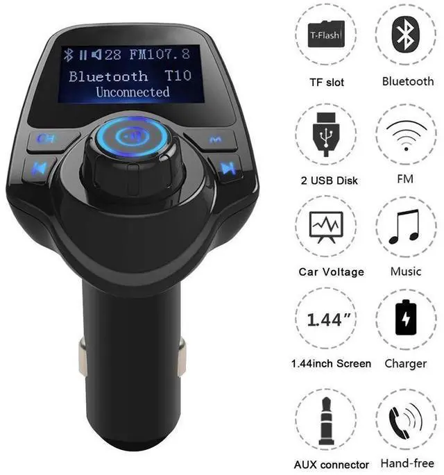 1.44 inches screen is allowed to clearly display: name of English/Chinese song, voltage of car battery and incoming phone number.