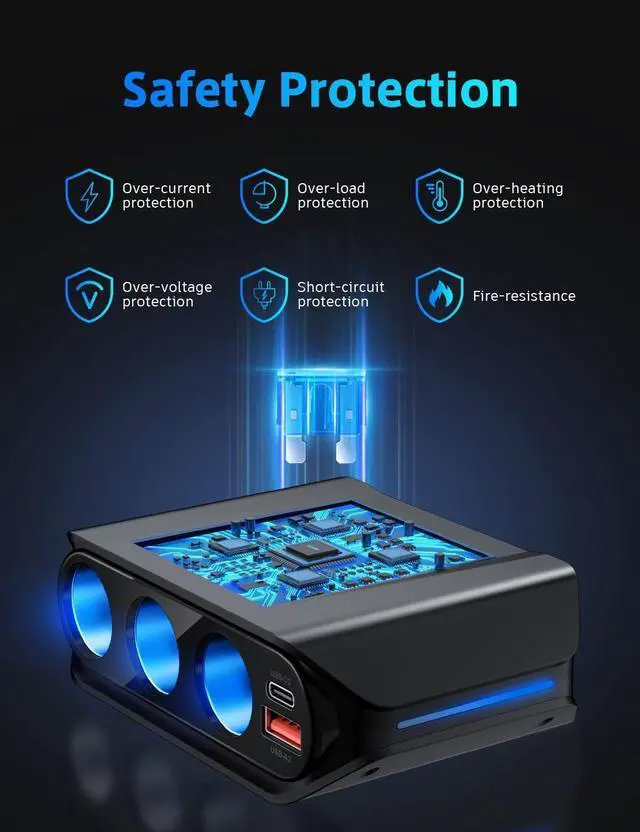 180W Cigarette Lighter Adapter: The Cigarette Lighter Dispenser comes with 4 charging ports and 3 Cigarette Lighter Dispenser sockets, providing a total of 180W of power. The car charger adapter can fast charge up to 24 devices at the same time in your 7V/12V vehicle, suitable for your GPS, car recorder, vacuum cleaner, car refrigerator, FM, air pump, etc. (the power of a single outlet does not exceed 120W)