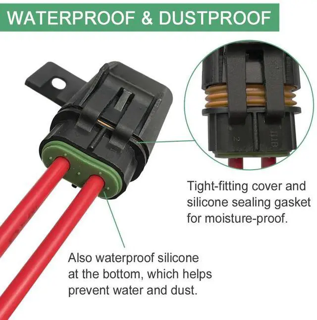 IP68 waterproof and dustproof: ATC/ATO fuse holders have an excellent waterproof design with a weatherproof cover with mounting strips and silicone gaskets that fit tightly together.