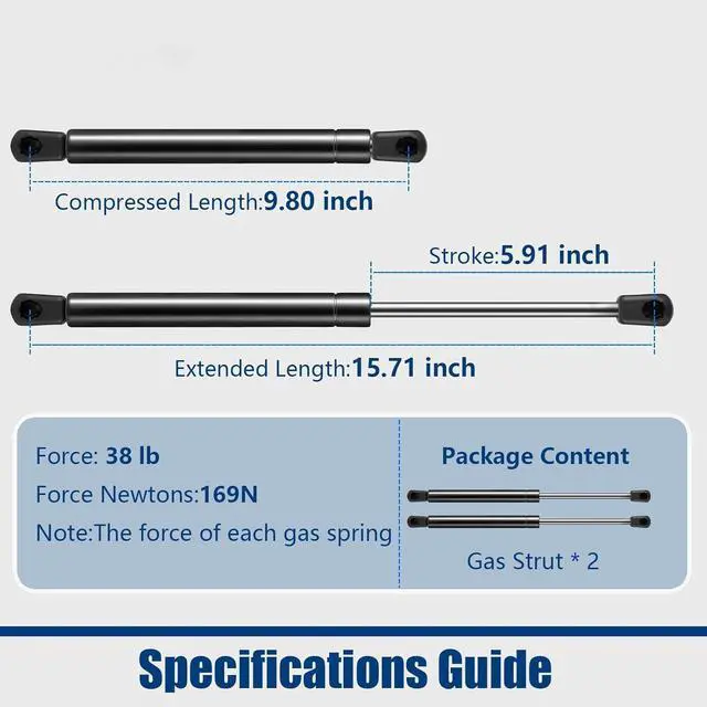 C16-09209 16-inch 38lb/169N Gas Bar Shock Spring Lift Support Leer Camper Shell Truck Top Hat Canopy Door Pickup Window Comfort Replacement Parts, C1609209, C16-33277, C16-33309, Set of 2