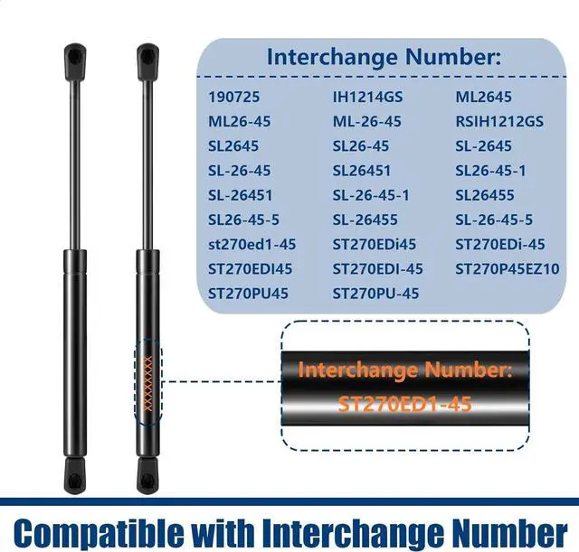 ST270EDI-45 27 inch 45 lb 200N gas strut spring shock absorber lift support for van hood shell pickup truck underground top trim replacement parts, st270p45ez10, st270edi2-45, set of 2 by auclidis