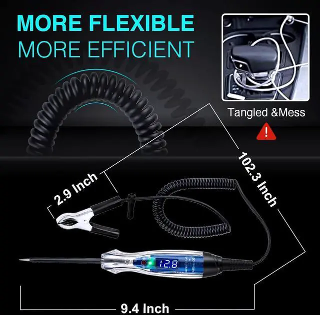 WIDER VOLTAGE RANGECompared with automotive electrical testers in the market, the maximum voltage measured is only 48V, but the maximum voltage our technology can measure has been upgraded to 60V.AWBLIN Circuit Test is perfect for checking all kinds of vehicle circuits, quickly checking automotive headlights, taillights, turn signal circuits, faulty sockets, fuse connections, and also used for t
