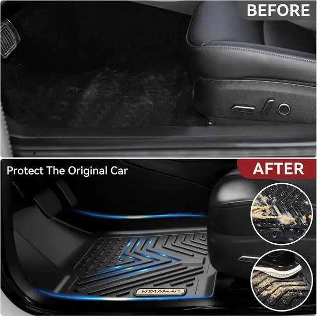 Custom Fit: These floor mats are compatible with 2020-2024 Tesla Model Y (5 Seater), not for vehicles with vinyl floors. 3D laser scanning technology gives full protection to both the front and back. Please remove old floor mats before installing new ones.