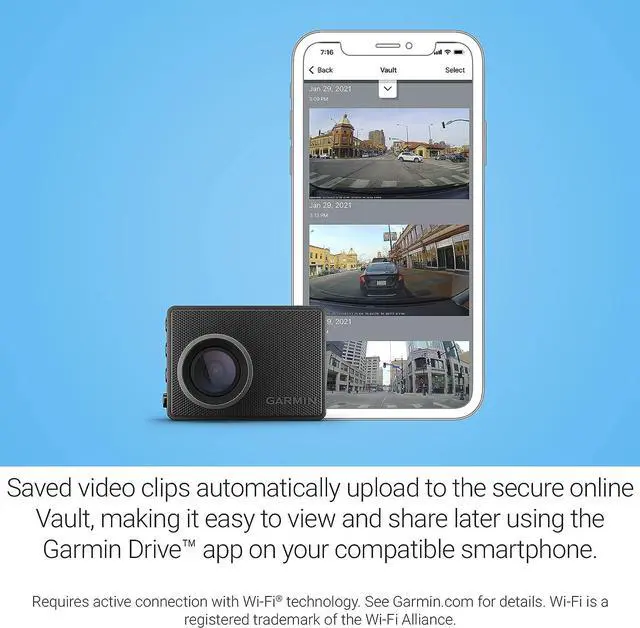 Access the camera remotely for Live View monitoring (requires constant power and an active Wi-Fi connection; access via the Garmin Drive app on your compatible smartphone) when youre away from your parked car