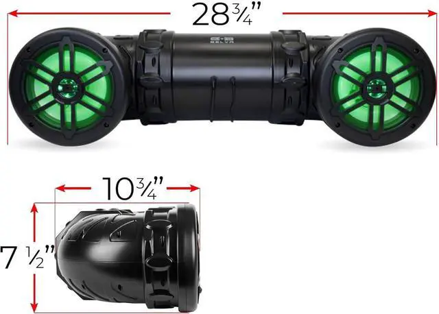 : Made for the rugged outdoors, the BPS6RGB features heavy-duty ABS construction, 6.5" long excursion woofers, and 1" titanium balanced dome tweeters for durability and high-quality sound reproduction.: Enjoy a hassle-free setup with quick connect speaker terminals, a 3.5 mm Aux-Input for versatile connectivity, and plug-and-play functionality. The system includes heavy-duty straps for flexible mounting positions, making it perfect for various outdoor adventures. Speaker grills are also included for added protection.