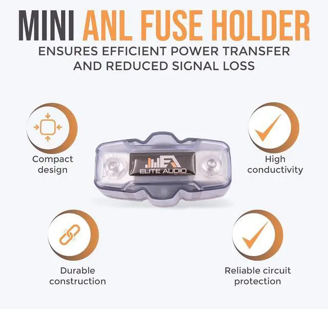 We prioritize your safety with a high current capacity ANL fuse holder equipped with a 100-Amp fuseOur kit includes ring terminals and copper ferrules, ensuring secure and efficient connections, optimizing your system's performance with minimal effort