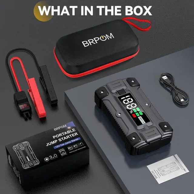 Emergency FlashlightsThe battery jumper has larger luminous area and utilizes bright LED flashlight with 3 modes (lighting/flash/SOS) under different circumstances and can be used for 48 hours constantly. A battery jumper box for car battery portable comes in handy, will help you find ways in an emergency or on an adventure trip. Heavy-Duty Clamp CablesUpdated car jump starters with extended length to reach varied battery terminals, bolder cable for better conductivity, larger opening range for ease of use, built-in 8 protections and visible alarms to automatically detect connection, will free all your worries about incorrect operation and sparks.