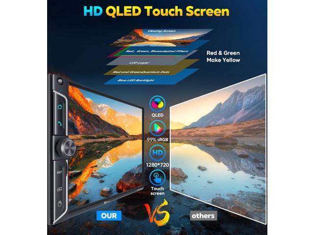 - Indulge in Visual Excellence: Our upgraded double DIN car stereo boasts a cutting-edge QLED display, delivering unparalleled color accuracy, brightness, and contrast. With a resolution of 1280 x 720 pixels, every detail is rendered with remarkable clarity. Immerse yourself in high-definition content, supporting resolutions up to 1920 x 1080P, ensuring a cinematic viewing experience like no other.
