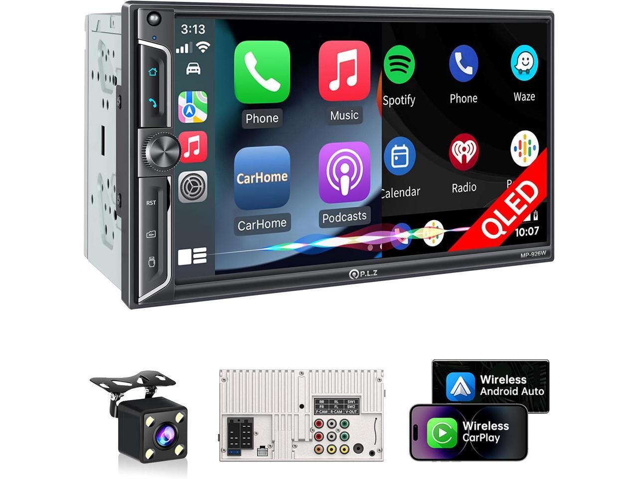 7" Wireless Double Din Car Stereo Car Play Radio Carplay Android Auto QLED Touch Screen, Bluetooth 5.3 Audio Receivers, 1080P Backup Camera, 4.2 Channel Outputs 240W, 2 Subwoofer, FM/AM, SWC