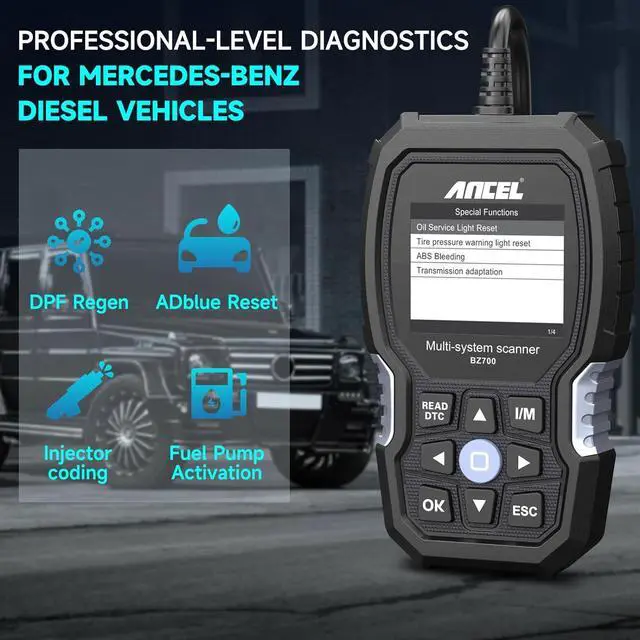 ADVANCED DESIGN: ANCEL BZ700 obd2 scanner can automatically identify vehicle information for Mercedes Benz, avoiding tedious manual operation. The fault system will be displayed in red font, which can quickly identify and remove the fault. Easy to understand operating tips. Comprehensive data stream, can classify the data stream, let you more intuitive view. Data record, playback, supports DTC Lookup Library, Snapshot Graphing. One ANCEL BZ700 diagnostic tool is enough for professional diagnosis.
