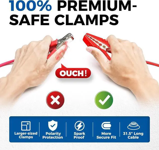 [Extra-Safe Operation] With spark-free copper clamps, PVC-coated wiring, and built-in automatic protection against reverse polarity, the BT300P provides the extra safety you need when battery testing. Its insulated ABS shell prevents current leaks and can withstand damage. With an extra-long 31.5 cable, this car battery tester is even more convenient to use.