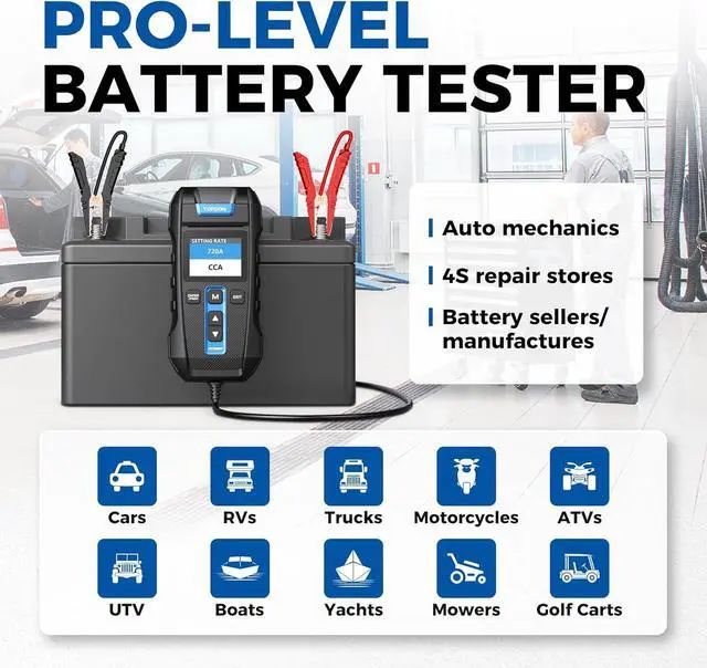 TOPDON BT100 is a basic 12V battery tester thatll serve you well with necessary features and wont be way above your budget.