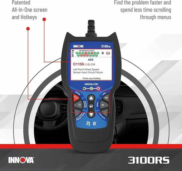 LIVE DATA FOR MORE ACCURATE DIAGNOSIS - With the Innova 3100RS OBD2 reader you can see your vehicles essential information like RPM, speed, and oil temperature in real time to help identify and correct problems. You can also check and test your battery and alternator, so you know whether you need to bring your car to a technician or not.