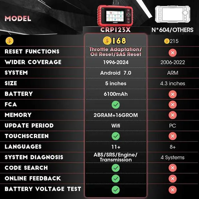 Accurate & Intuitive Multi-System DiagnosisThe Launch CRP123X diagnostic tool can pinpoint the problem components when warning lights flash for the transmission, ABS, and SRS airbag check engine. This makes for a faster diagnosis and helps car owners avoid trips to the dealership. After upgrading to V 2.09, you can also experience the new addition of the point card renewal portal in the mall, as well as the introduction of support for FCA SGW AutoAuth.