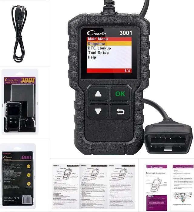 On-Board Monitor Test]: LAUNCH Creader 3001 is one useful and economic OBD2 FULL FUNCTION automotive diagnostic tool, support read live data for engine system, quick detecting vehicle failures, saving you the trips to your mechanic.