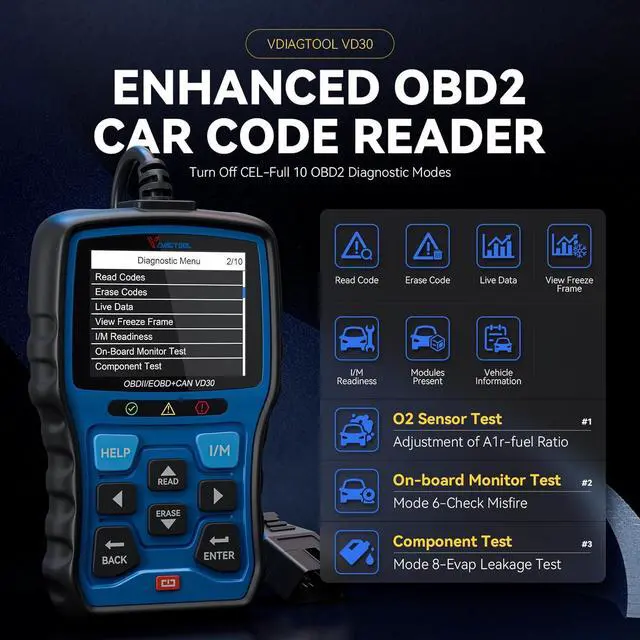 2024 NEWEST ENHANCED OBDII SCANNER DIAGNOSTIC TOOLVDIAGTOOL VD30 performs all 10