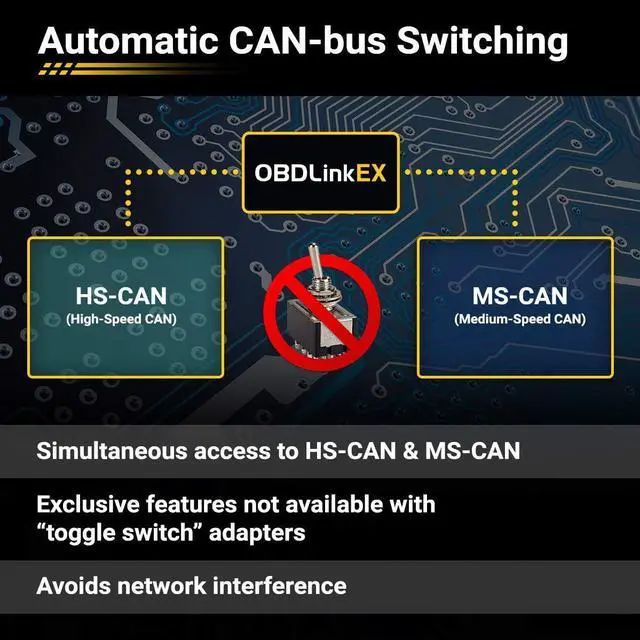 ELECTRONIC SWITCH allows FORScan to access all CAN buses simultaneously and enables advanced functions not possible with toggle switch adapters