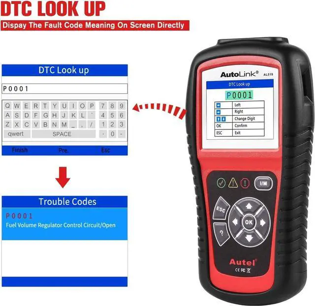 Quick DTC Definition LookupFed up with cheap code readers that you have to google the meaning of the codes? Look no further! Autel AL519 auto diagnostic scanner with DTC Lookup and DTC Breaker features can show you the definitions and descriptions of the DTCs in no time! No more guesswork or frowning upon the contradictory opinions on the internet! Coming with a TFT color display to show DTC definitions more clearly, a built-in speaker provides an audible indication. AL519 is super easy to use even if you are new to a car repair.