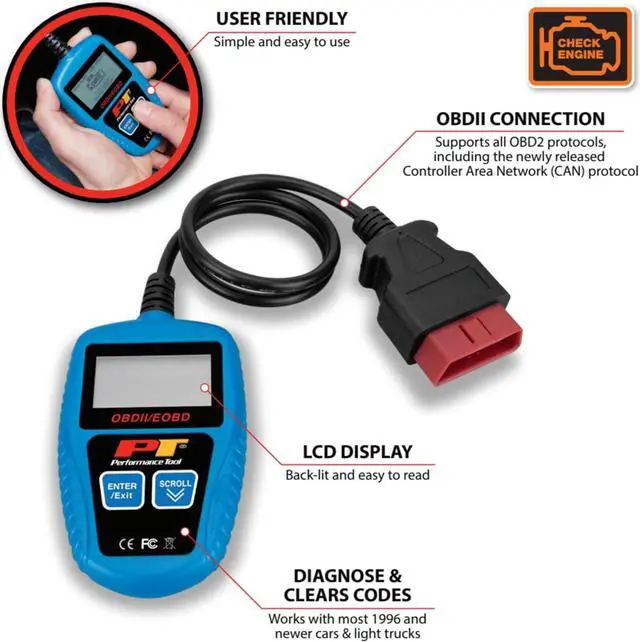 Reads and displays your (DTC) Diagnostic Trouble Codes on an easy to read screen along with the vehicles emission readiness status of OBD Monitors