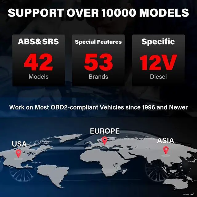 Multilingual+Wide Compatibility: This launch scan tool works on most 1996 and newer OBDII compliant vehicles. All the compatible vehicle brands will increase as the CR629 is updated, including SUVs, minivans, 12v light-duty trucks. If you cannot confirm it, pls contact us. This obd2 scanner supports English, French, German, Spanish, Portuguese, Russian, Japanese, Italian, which can meet your read demand.
