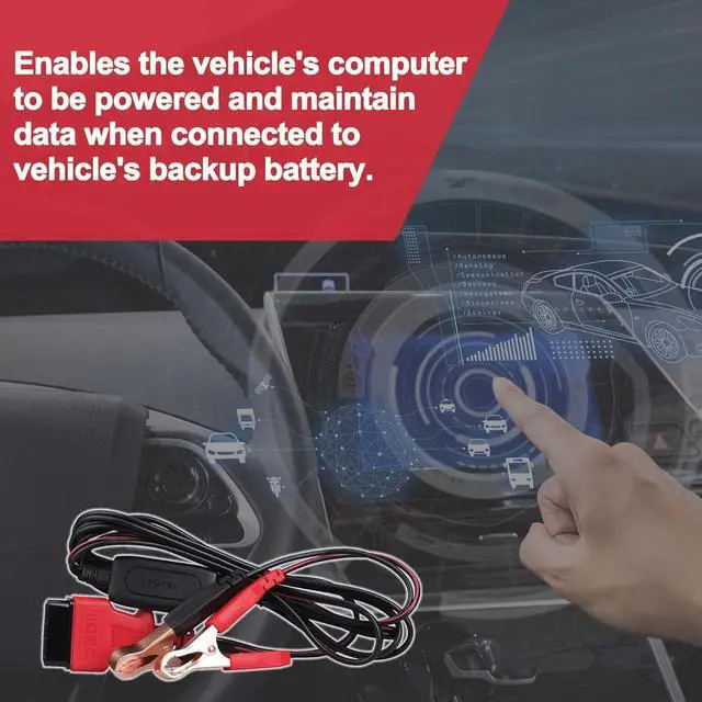 When replacing the battery, the Autel OBDII Memory Saver protect vehicle codes and electronic presets to prevent vehicle data loss and save time and effort on re-coding systems.