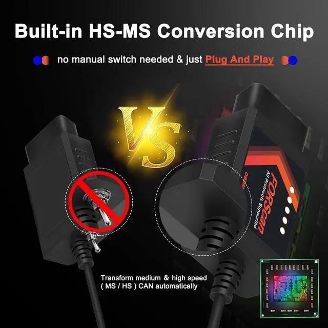 WHATS NEW? --- Update to " Auto" Version, 20 times faster than the " toggle switch" version. No manual switch needed, this OBD2 ELM327 adapter can transform medium/high speed (MS/HS) CAN automatically, just plug and play! With the reliable USB cable connection and V 1.5 version, hardware avoids data corruption and dropped packets.