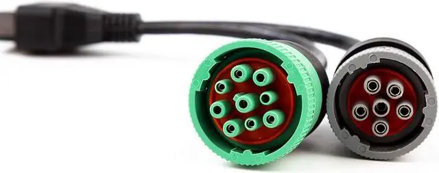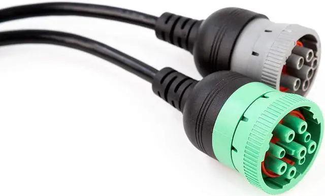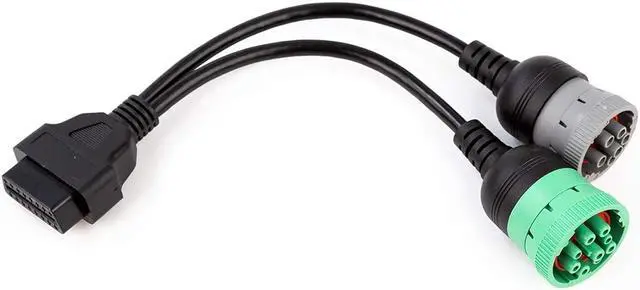 OBD to Type 2 Green9p J1939 and 6p J1708 Split Y Cable for Diesel Truck Diagnostics