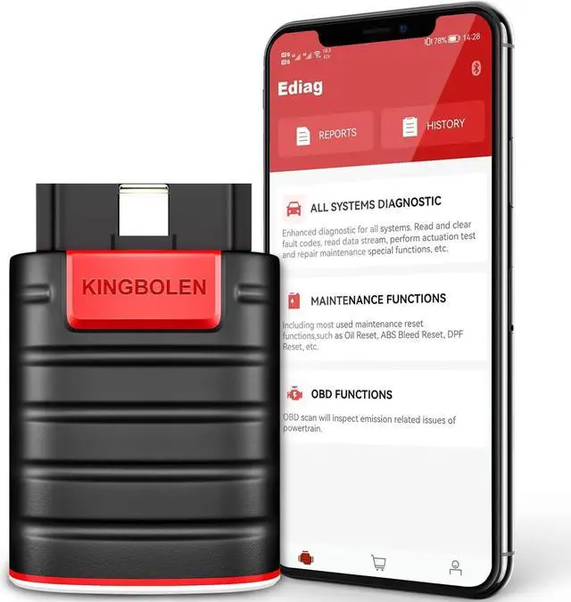 OE-Level ALL System OBD2 Scanner Bluetooth + OBDII Full Function KINGBOLEN Ediag Bluetooth OBD2 scanner, developed and maintained by professional engineers, supports vehicle all systems diagnostic and OBD2 full function, it can read/clear fault codes, read live data/freeze frame, read control module information, actuation tests and reset functions for TPMS, ECM, BCM, ABS, SRS, TCM, BMS, SAS, A/C & RTM system etc... Applicable to maintenance technicians, repair shops & individual owners.
