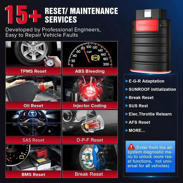 15+ Reset Functions, Easy Problem Solving Ediag professional bluetooth obd2 scanner diagnostic tool comes with 15 reset services, like TPMS Reset, ABS Bleeding, Oil Reset, Injector Coding, SAS Reset, BMS Reset, Reset Gearbox, AFS Reset, SUNROOF, Break Reset, SUS Rest, Elec. Throttle Relearn. More maintenance functions under the exact car menu. No doubt, it can help you easily solve the problems on your car.