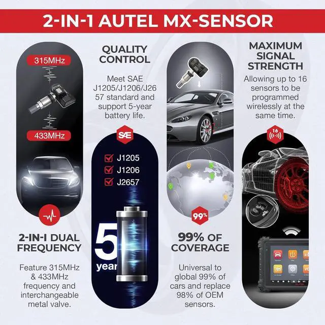 Autel MX-Sensor, 100% SanctificationAutel is the ONLY- ONE manufacturer that produces 2-in-1 TPMS sensors & comprehensive tools to provide complete solutions for replacing OEM TPMS service. AutelOnlineShop, the top distributor of Autel, provides reliable 7/24 tech instruction, a 3-Month return & replacement, and a 1-Year undertaking for every user. Any problems, please message the post-sales care.