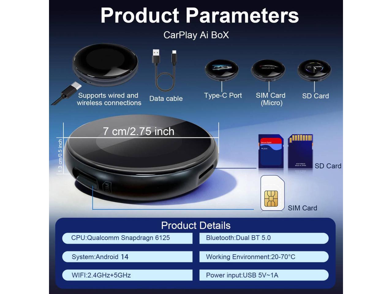 Plug and Play: Enjoy the full functionality of wired Android Auto with a wireless connection. Simply connect the AI Box to your vehicle's CarPlay/Android Auto USB port