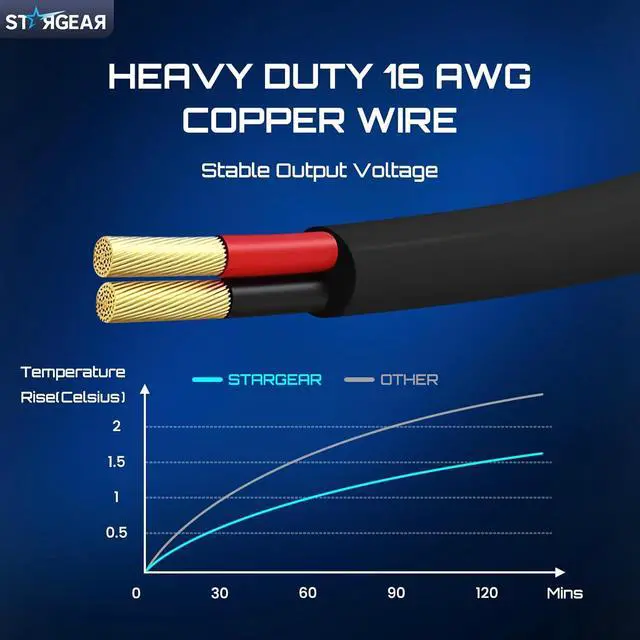 Ultra Low Internal Resisstant: Tested with a 13.145V power supply and 5A load, the voltage drop is only 0.2V. After 30 minutes of using, the temperature rise is minimal at just 0.6°C, ensuring safe and efficient.