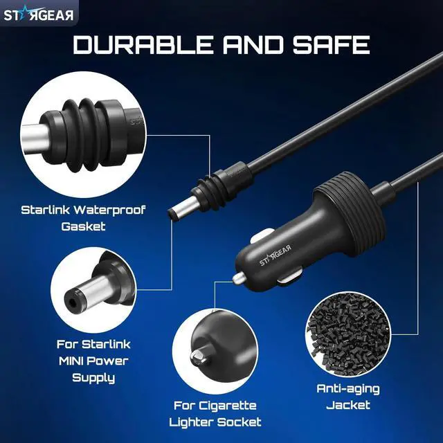 Wide and Portable Application: Stargear 12v starlink mini car adapter for Starlink mini is equipped with high-quality 16AWG wiring for consistent performance. Designed for 12V-48V cigarette lighter sockets, versatile for rv, car, suv, truck etc.