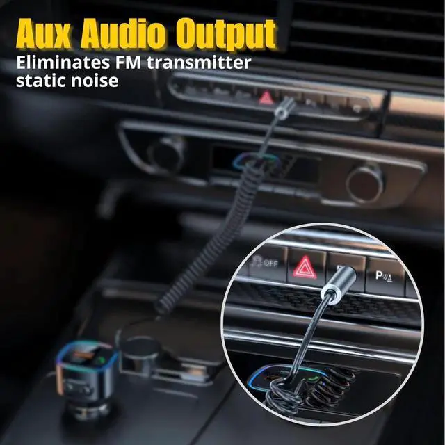 This car adapter features a 3.5 mm aux output with a 90cm spring cable. It eliminates the need for FM transmitter adjustments, providing crystal-clear sound quality without any static noise when playing music from your smartphone.b