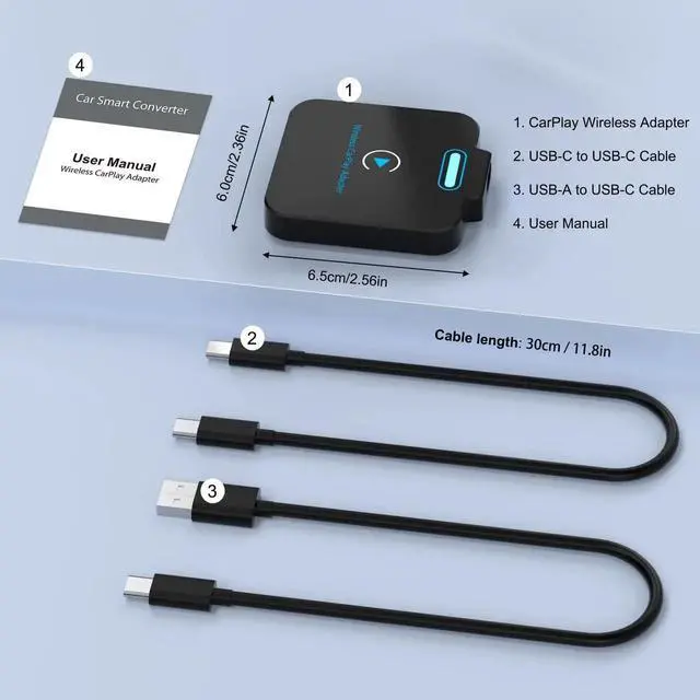 - [No Worry to Buy]The Wireless Carplay Adapter for iPhone comes with 12 months after-sales service and 24 hour online technical support. If the Wireless apple CarPlay Adapter does not work properly in your car, please feel free to contact us.