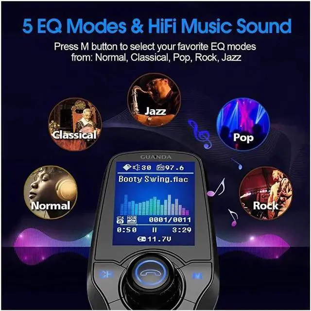 Color: Black With UL Approved, s 4in1 Bluetooth FM Transmitter for Car, you can drive safely. Answer, hang up, reject a call, redial the last number, and pick your favorite song all from one easy to use display. Car FM Transmitter