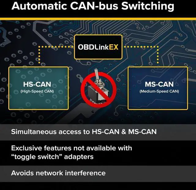 ELECTRONIC SWITCH allows FORScan to access all CAN buses simultaneously and enables advanced functions not possible with toggle switch adapters