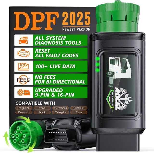 Secure 9-Pin & 16-Pin Connectors Locking Design, Ready to UseComes standard with 9-pin locking connector for stable truck connections and 16-pin OBD2 plugno need for adapters. Unlike other tools, the locking mechanism prevents disconnections during regen or scanning, even when the truck is running